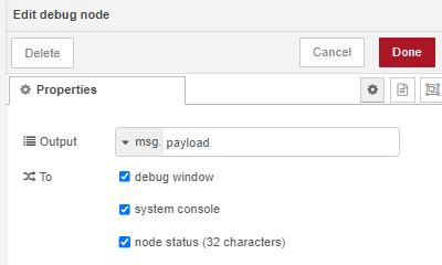 On both debug nodes, I have selected all 3 output options (to get as much info as available): This is what I see: