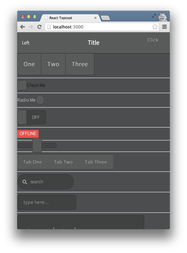 The project builds to a simple app containing each of the Topcoat components. This repo is also being used to experiment with various ways of packaging a webapp with including: