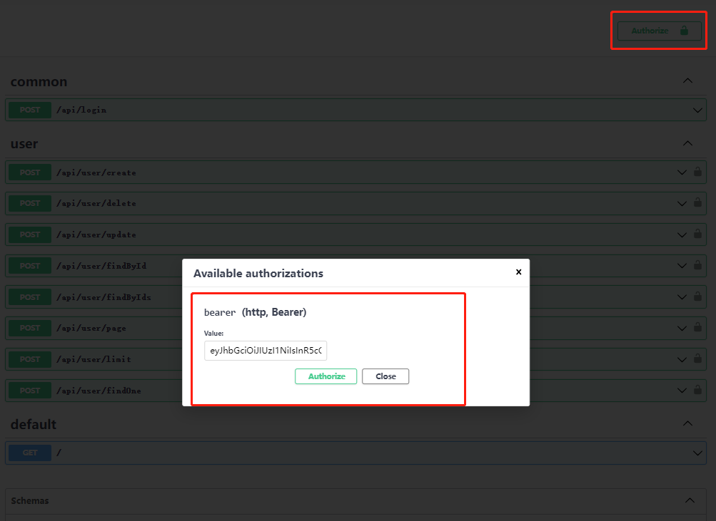 API接口需要认证,先使用login接口获取accessToken(账号:zhangsan/123456),然后复制,点击Swagger页面中的Authorize按钮,输入这个accessToken,就可以测试其他接口了。