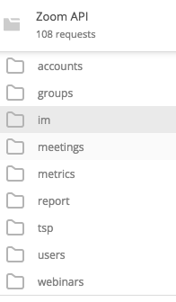 Ideally postman would look like the following (after I manually edited). This would match the grouping of our documentation (not postman docs) and our swagger UI (playground)