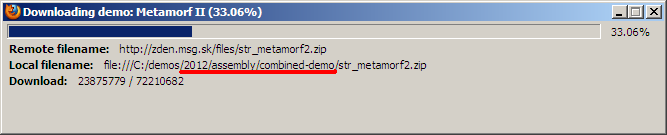 Step 2: You click the link, and the demo starts downloading - the target path is generated from the demo's metadata, like party or group name.