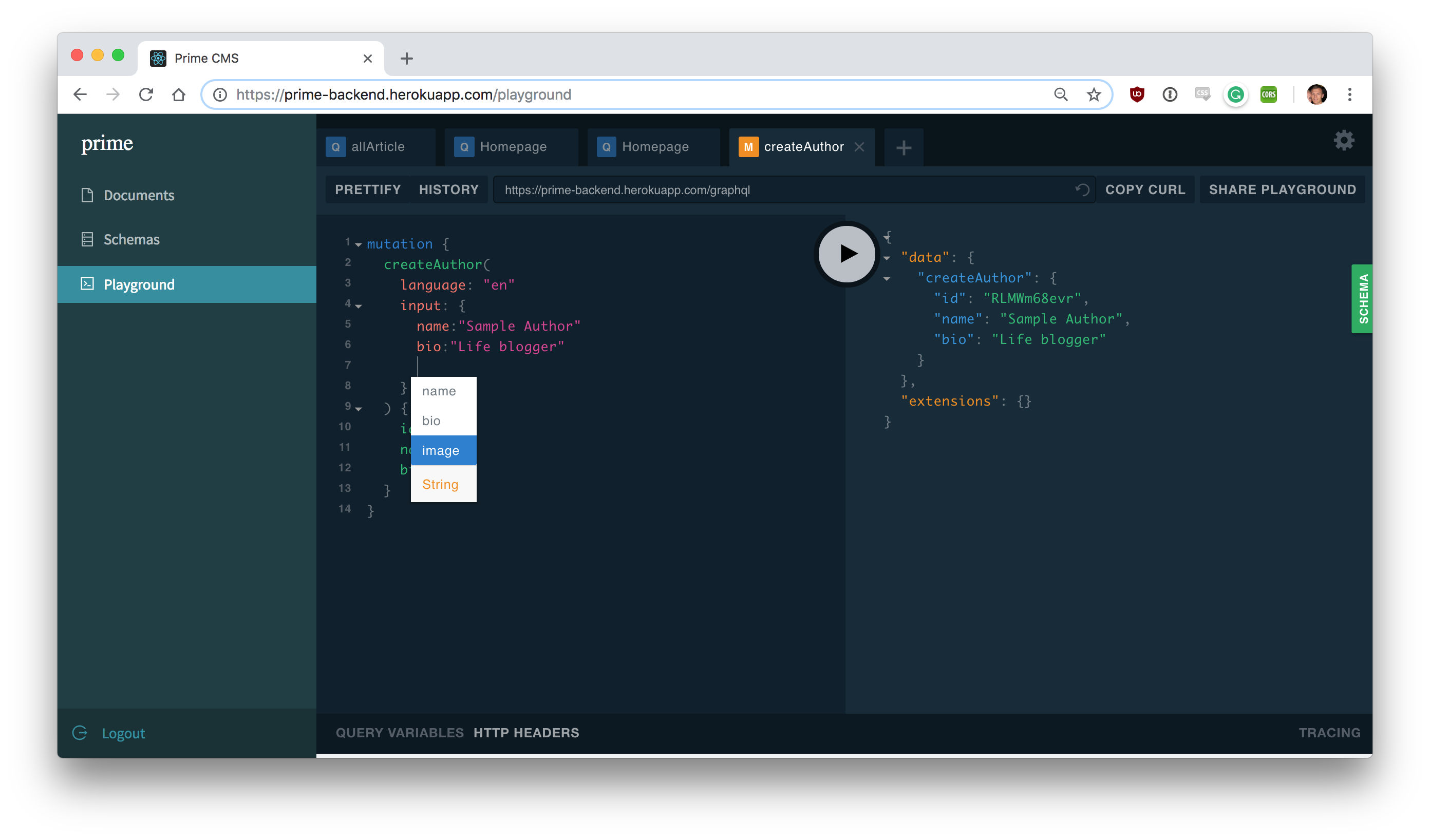 Prime is a standalone, self-hosted, headless CMS with a GraphQL interface powered by TypeScript.