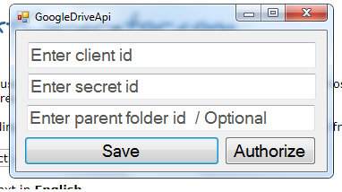 Add your google drive client and secret id , if you like to upload it to some folder in googe drive then copy the folder id which u can find in the link https://drive.google.com/drive/folders/some-id-of-urs