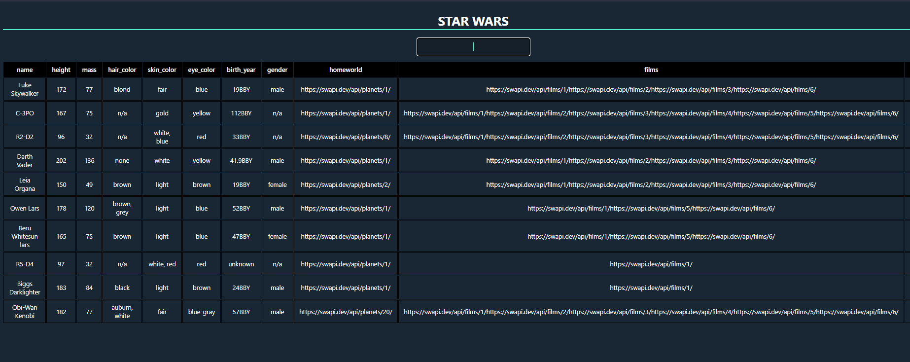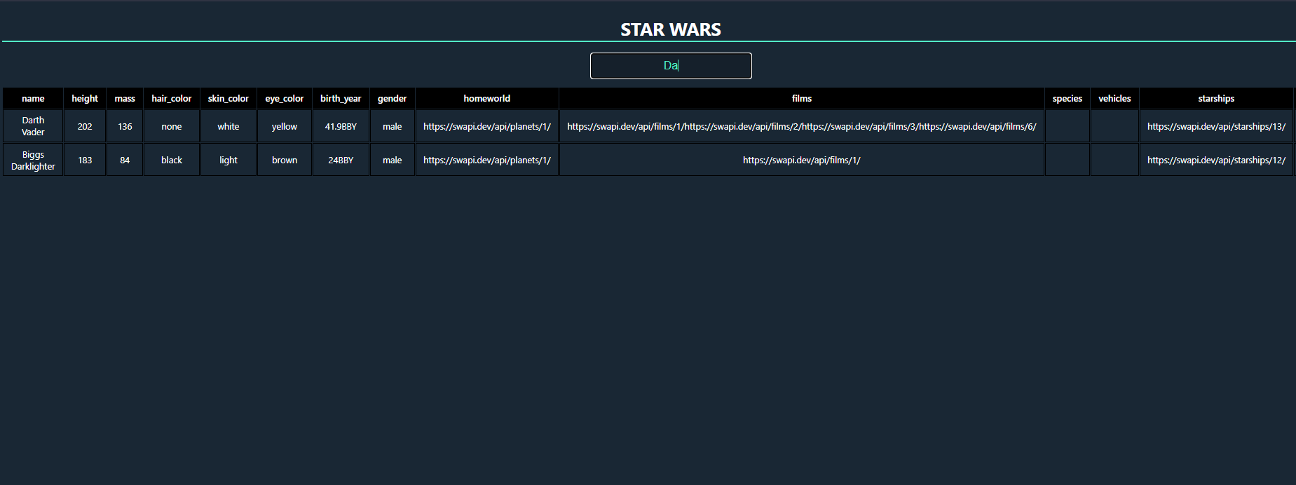 Objective: Create an application to view the people of the Star Wars universe, with the following requirements: