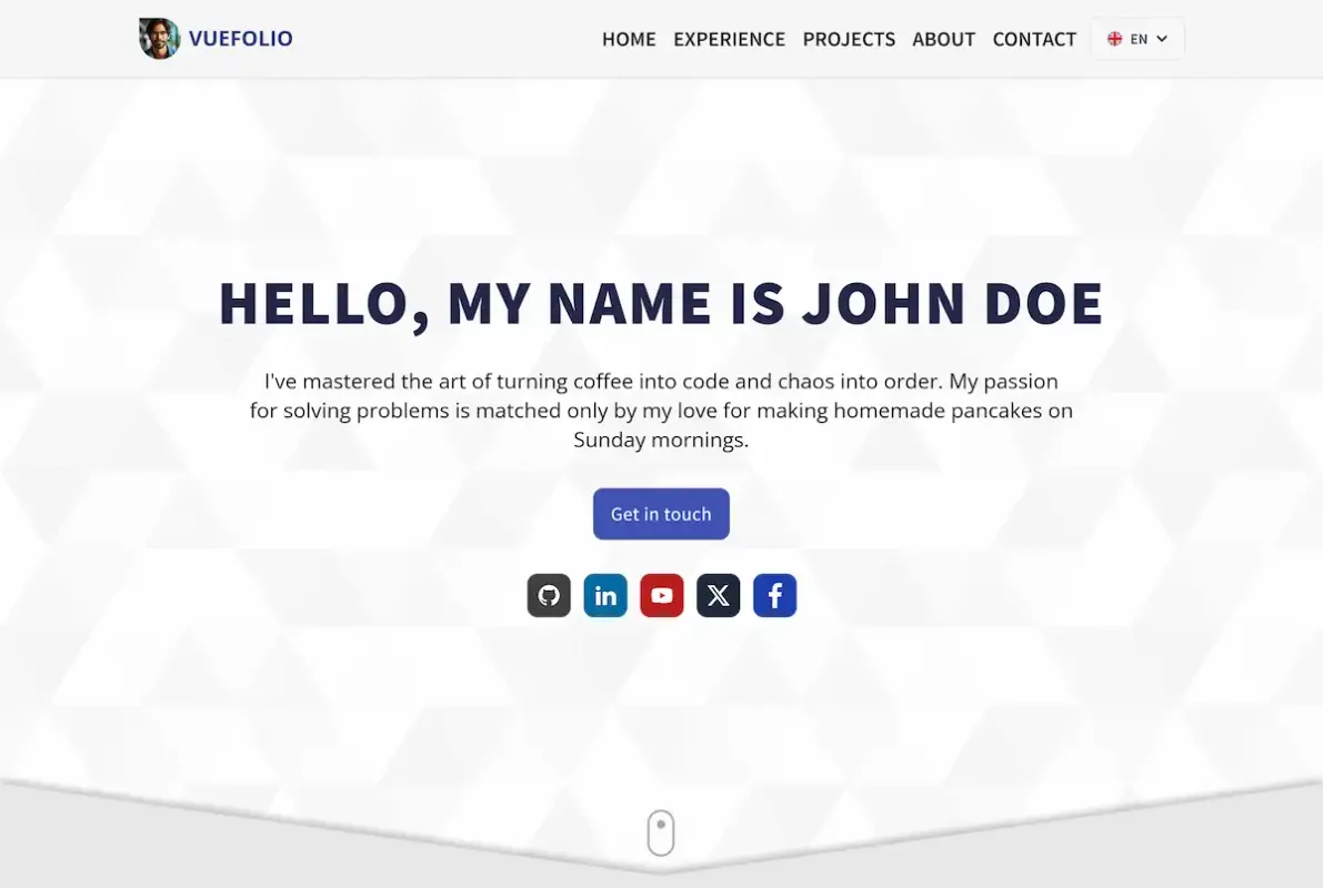 Welcome to the Vuefolio Template project! This template is designed to help you create a professional portfolio by simply updating the i18n localization files and making minor adjustments. Whether you're a designer, developer, or any professional, this template can be adapted to fit your needs and showcase your work in multiple languages.