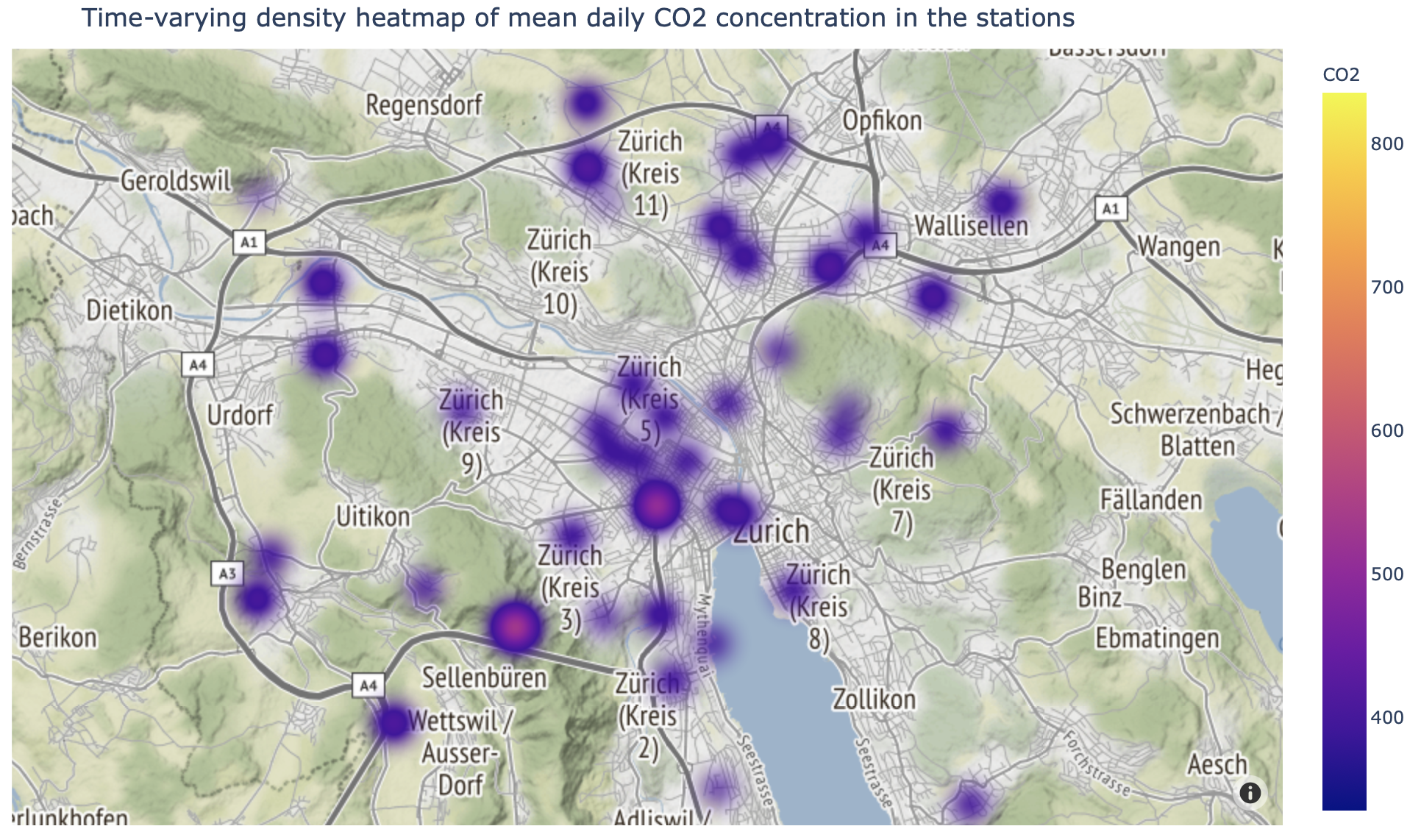 The project Carbosense establishes a uniquely dense CO2 sensor network across Switzerland to provide near-real time information on man-made emissions and CO2 uptake by the biosphere. The main goal of the project is to improve the understanding of the small-scale CO2 fluxes in Switzerland and concurrently to contribute to a better top-down quantification of the Swiss CO2 emissions. The Carbosense network has a spatial focus on the City of Zurich where more than 50 sensors are deployed. Network operations started in July 2017.