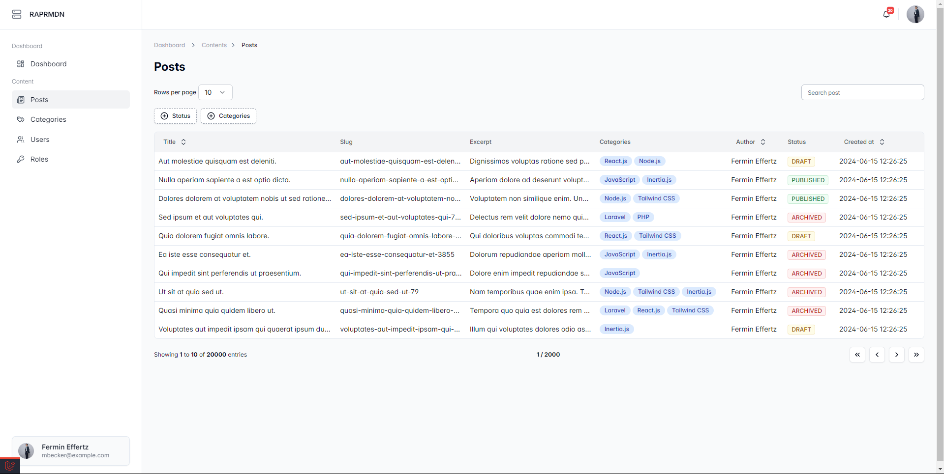 Server-side pagination, filter, live search, sort, and limit data to be displayed on each page.