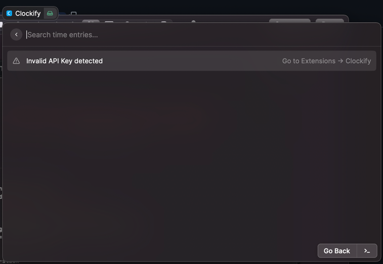 Thanks for the update @ismamz 💣 The new way you're handling the wrong API Key is much better, I do think that you should remove the "Go Back" button since escape has that purpose already. After correcting the API key it seems like its accepting as it should, but now I get this screen instead Stack trace I checked the code and see that its validating on the right key length - if changing one character I get to the next screen if I then click start I get this |