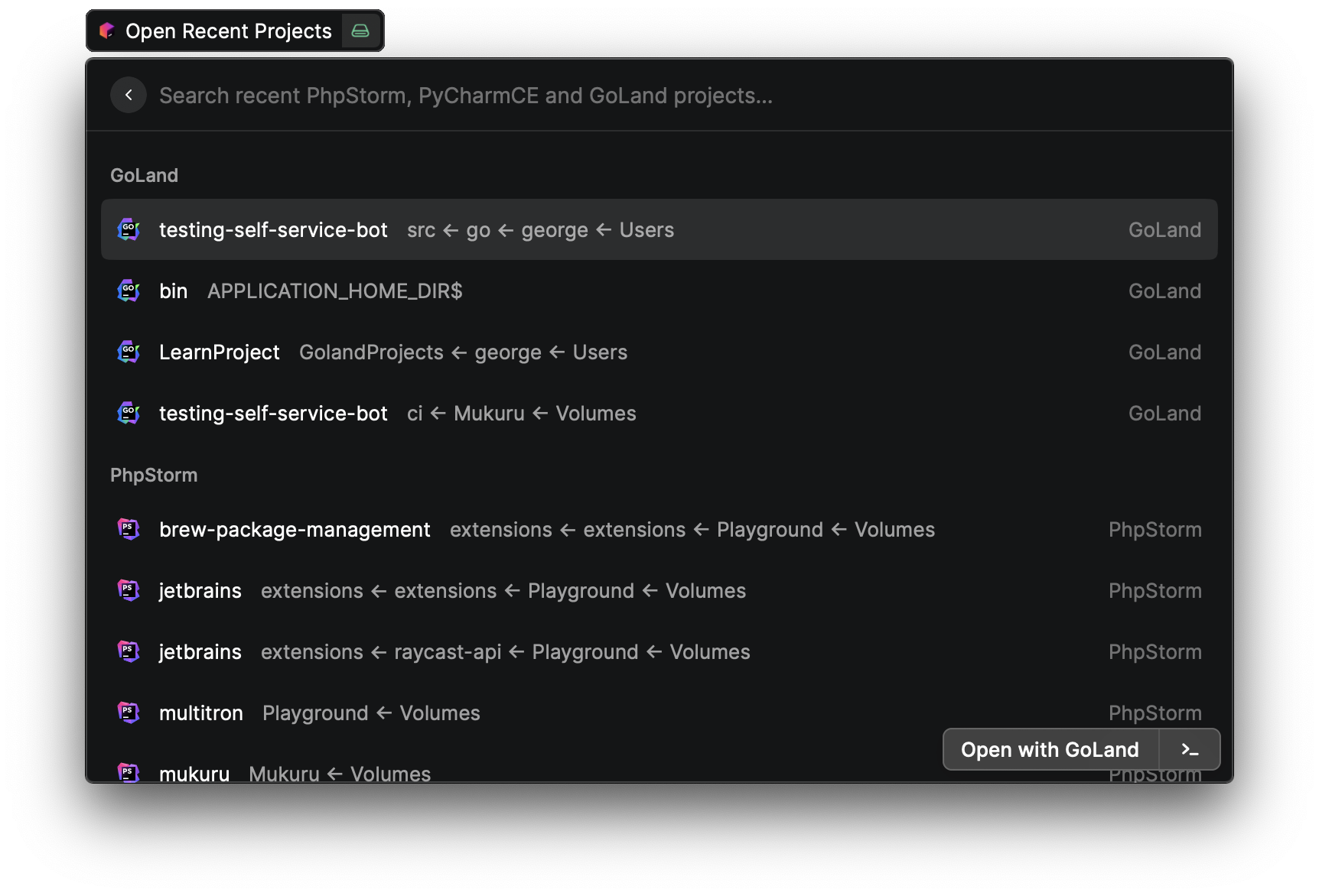 Since it's only one command extension, let's name it something like JetBrains Recent Projects.