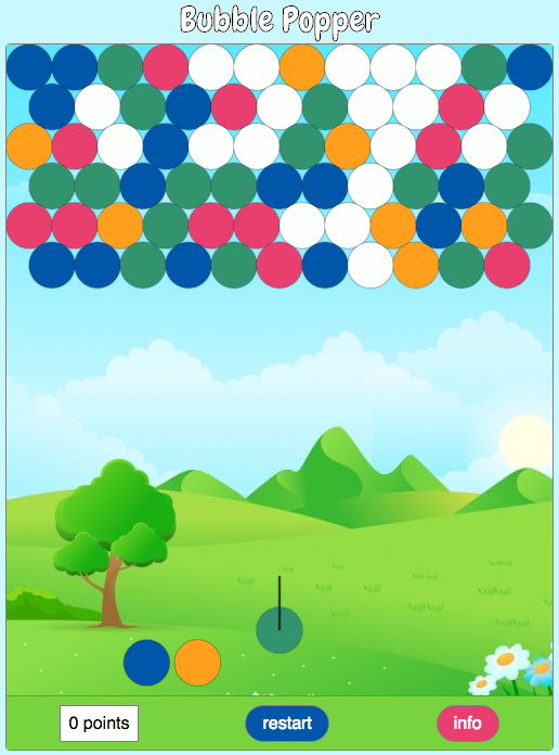 The goal of the game is to pop all of the bubbles. Bubble clusters of 3 or more will pop when shot by a bubble of the same color. You will lose the game if any bubble reaches the height of where the bubbles are being shot from.