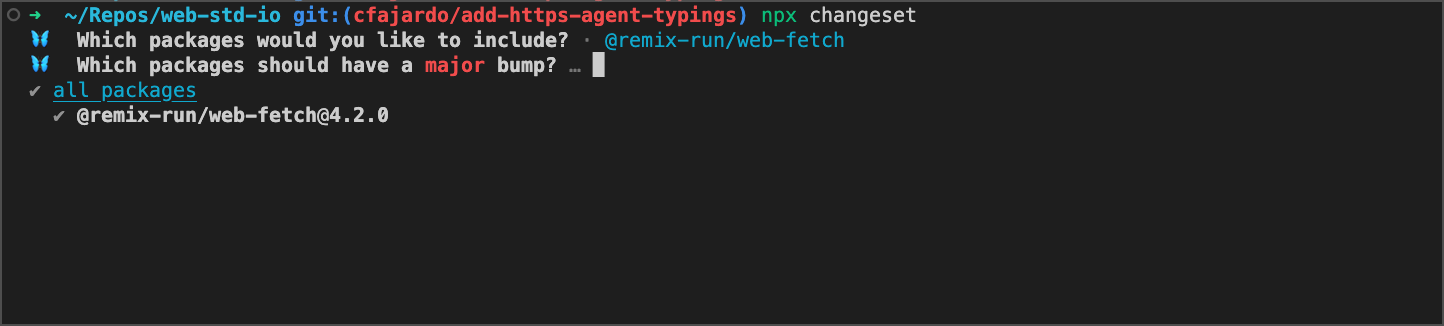 if you hit enter without selecting a package, it should prompt for minor and then patch. however you can always change the changeset after :) however, i usually just do it via the changeset bot prompt |