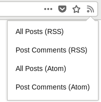 A long time ago (especially in Internet time), Firefox used to have an icon that showed up in the Awesome Bar when a website had RSS or Atom feeds available for subscribing. This add-on replaces the icon, so you don't have to add a button that will be constantly visible and taking up space. It will only be visible when there is a feed to subscribe to.