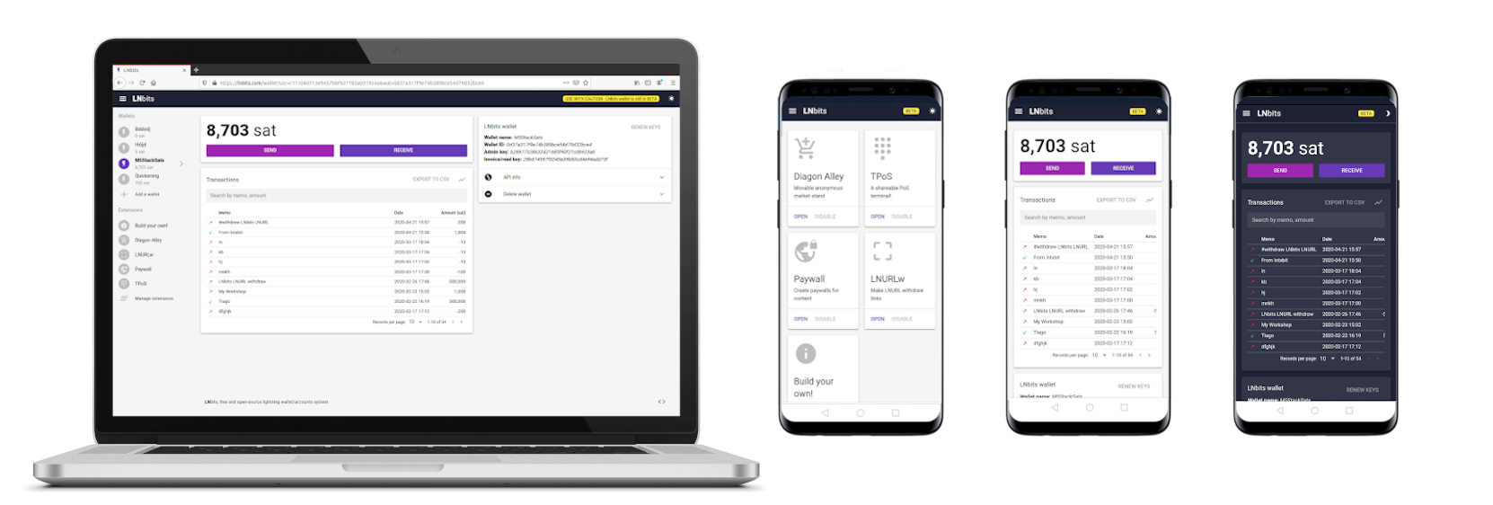 - Extendable platform for exploring Lightning network functionality via the LNbits extension framework
