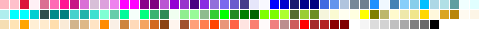 :cells-per-row 216 :border 0) "png" f))The gradients.json from uiGradients is loaded in (via a macro in clojurescript), and interpolated color swatches can be generated by specifying the color name. For example: