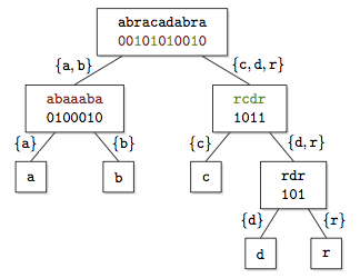 A Wavelet Tree contains a bitvector representation of a string. If we know the alphabet set, then the exact string can be inferred by tracking bits down the tree. To find the letter at ith position in the string