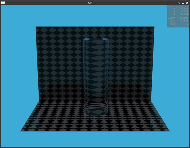 ./yart --object type=mesh,file=./models/cylinder.geo,material=reflect-refract,ior=1.3,smooth-shading=1,scale=0.1,0.3,0.1 \