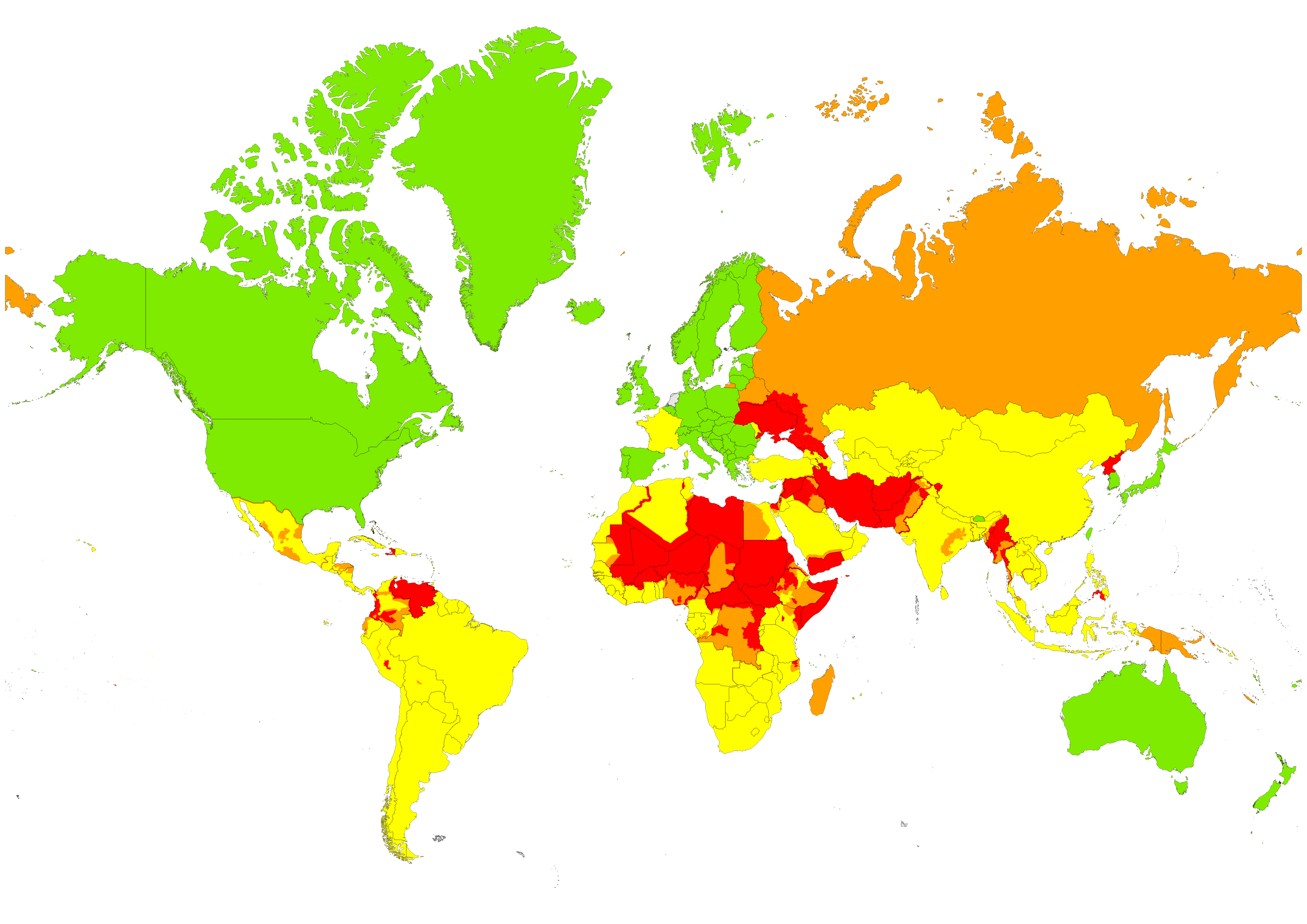 Het Nederlandse reisadvies heeft mooie kaarten over de vele gebeurtenissen in de wereld. Een mooie bron om een reis mee te plannen, echter voor de waaghalzen onder ons is het een mogelijkheid om verschillende landen te doorkruizen op een mooie tocht. Hierbij miste ik een kaart waar je up-to-date jouw prachtige expiditie in een oogopslag kunt vergelijken met de (harde) werkelijkheid. Zo kan je aan je oma laten zien dat jouw reis alleen maar een klein (licht)rood stukje kruis, en dat het allemaal niet zo heftig zal wezen.