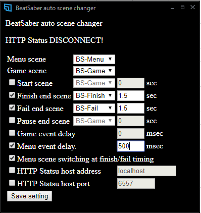 Beat Saberから本ツールにデータを送信するためにHTTP Statusをインストールしてください。