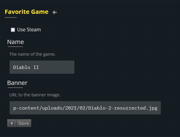 This is a web app project for GameBanana which displays on user profiles as a custom module. It shows a favorite game including total hours on record from your Steam profile. It uses the built-in CustomConfig API to store user data directly on GameBanana, and the GetOwnedGames method from the Steam Web API to retrieve game data.