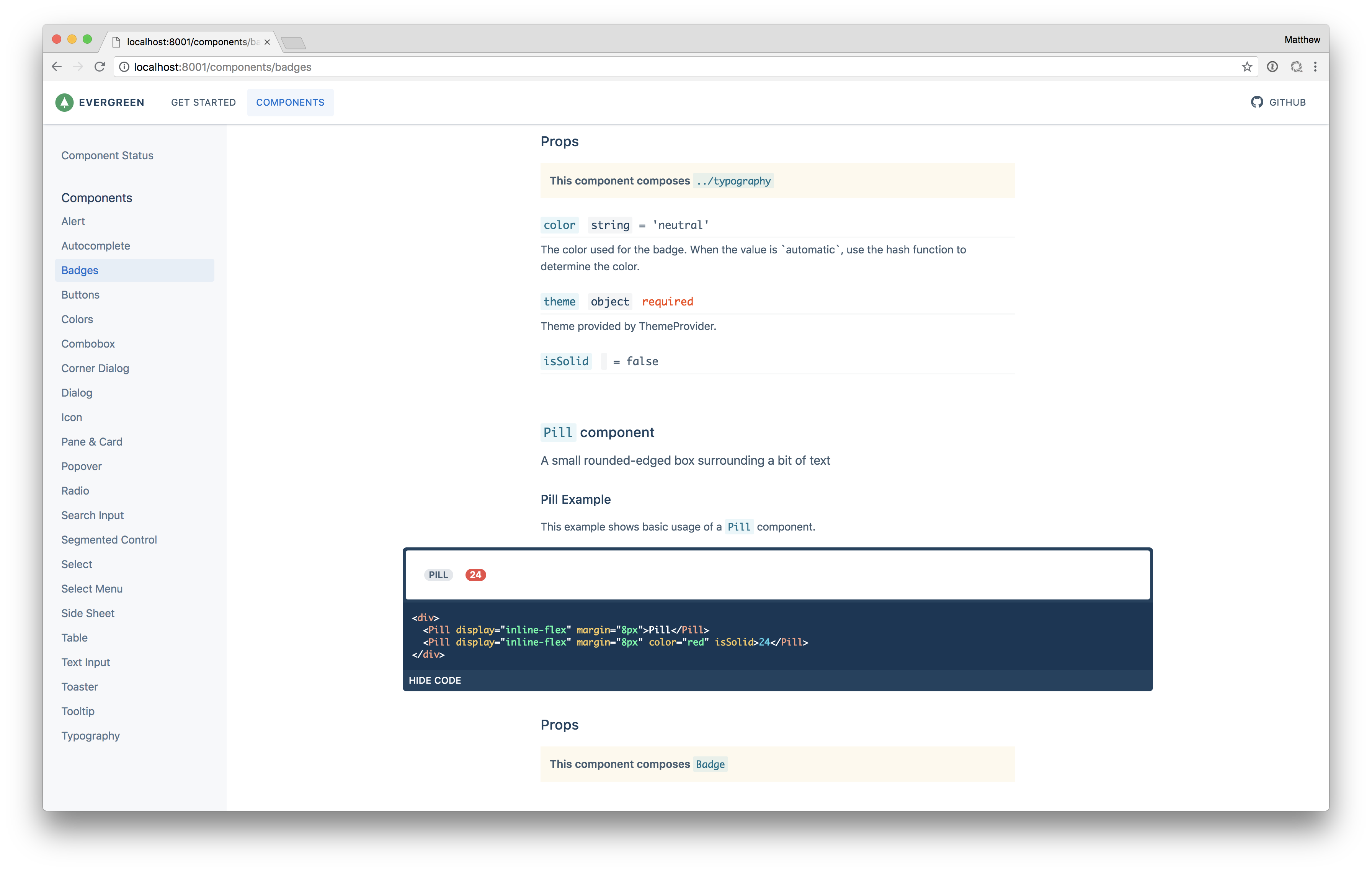 BadgeandPillto the list of docs.We also need to update the Component Status page to include all components to accurately represent the state of the docs.