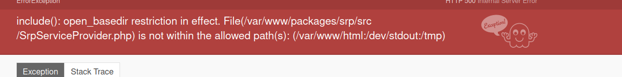 base_dirrestriction error if no PHP_BASEDIR_EXTENSION variable is set✅ No restriction error is been thrown if variable is set (to /var/www/packages)