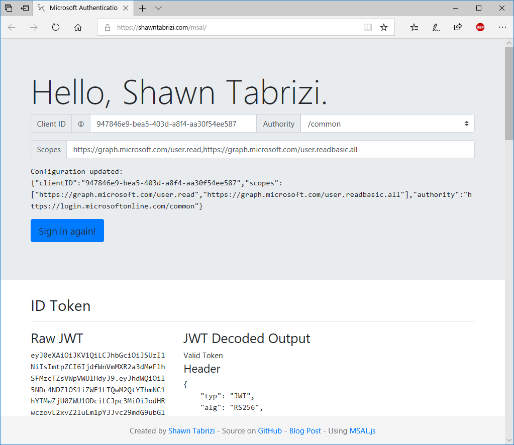 https://www.shawntabrizi.com/Microsoft-Authentication-with-MSAL.js/