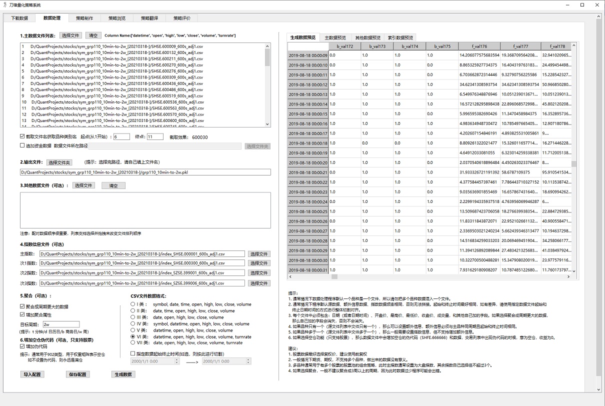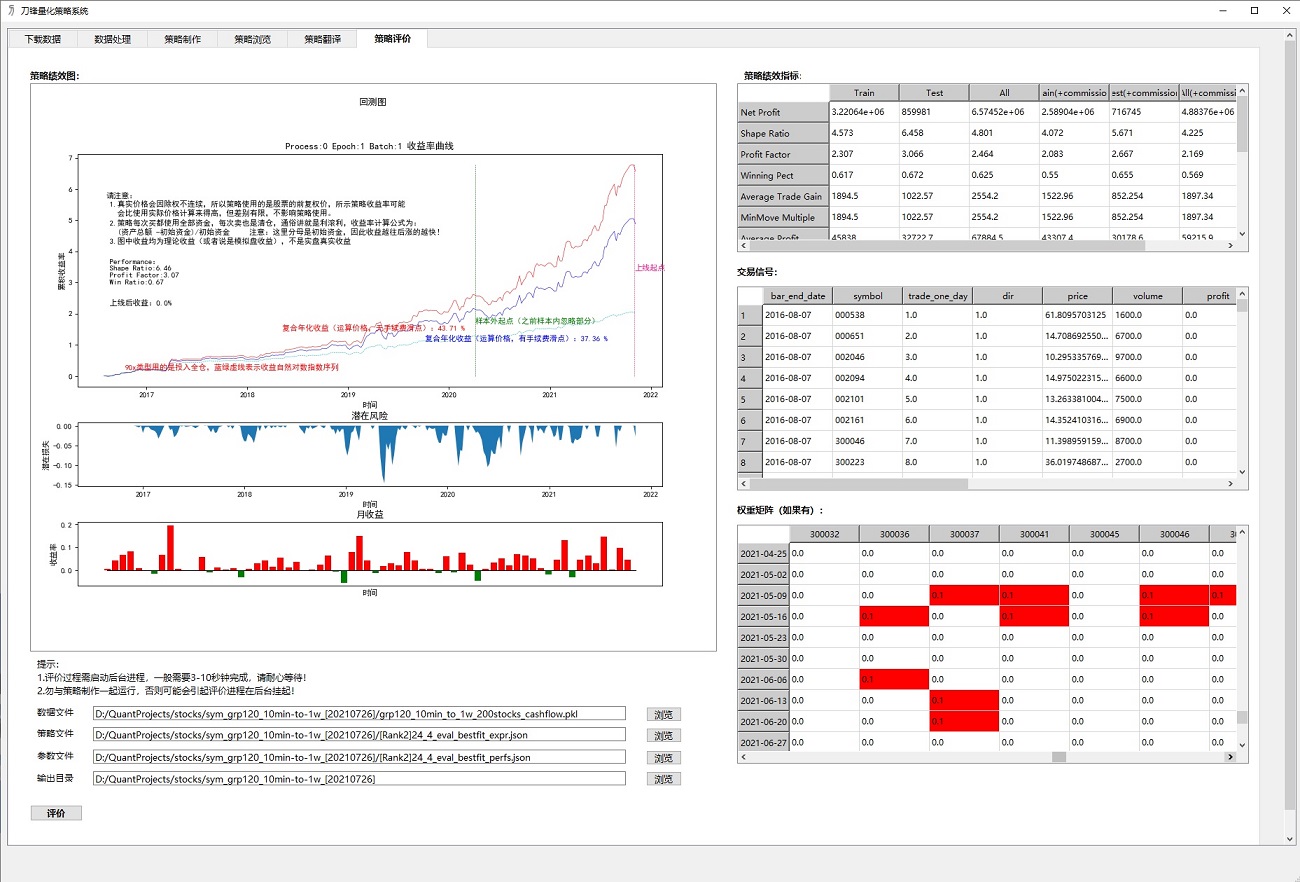 刀锋量化策略系统(Blade Quantification Strategy System()是一个适合所有人的量化策略系统,它提供数据下载、数据处理、策略制作、策略翻译和策略评分一站式的量化策略解决方案。它通过机器学习算法自动学习并生成策略,用户无需技术和编程经验,经过简单培训即可使用。刀锋能够制作期货、股票、外汇、现货、价差合约、加密货币的策略,同时我们还提供大量的最佳实践案例,包括商品期货、股指期货、国内外股票和外汇等,用户利用这些最佳实践可快速生成赚钱的策略。