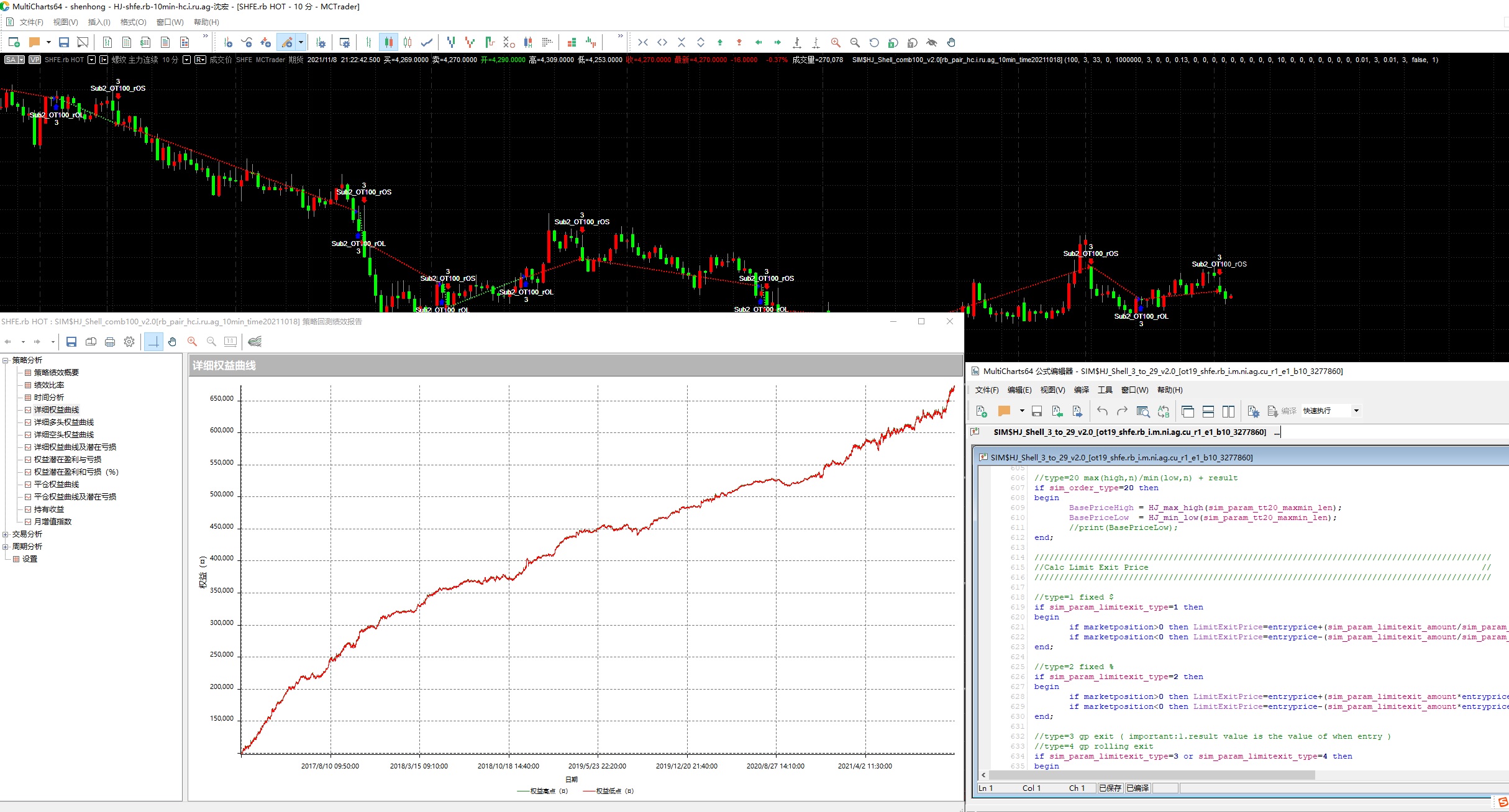 支持将策略无缝翻译成MultiChart, TradeStation, MT4, MT5, 通达信, 掘金量化等平台的程序,直接在这些平台上在线运行。