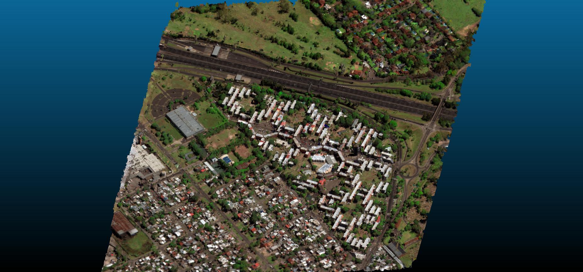 Here, a final textured mesh using the the different pipeline components of MVE except of the Structure from Motion and the Depth Map computation (for both steps it is necessary to use this Colmap fork to address specific properties of satellite images).