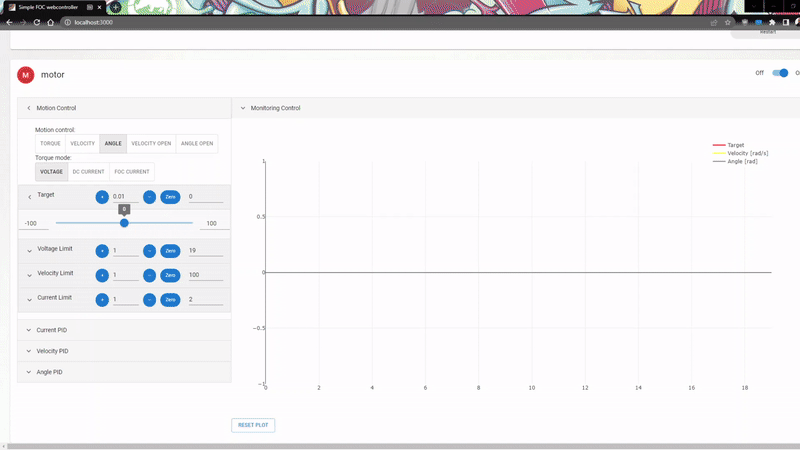 This is a controller interface for the Simple FOC library. It uses WebSerial to communicate with a suitable micro-controller on which Simple FOC is used.