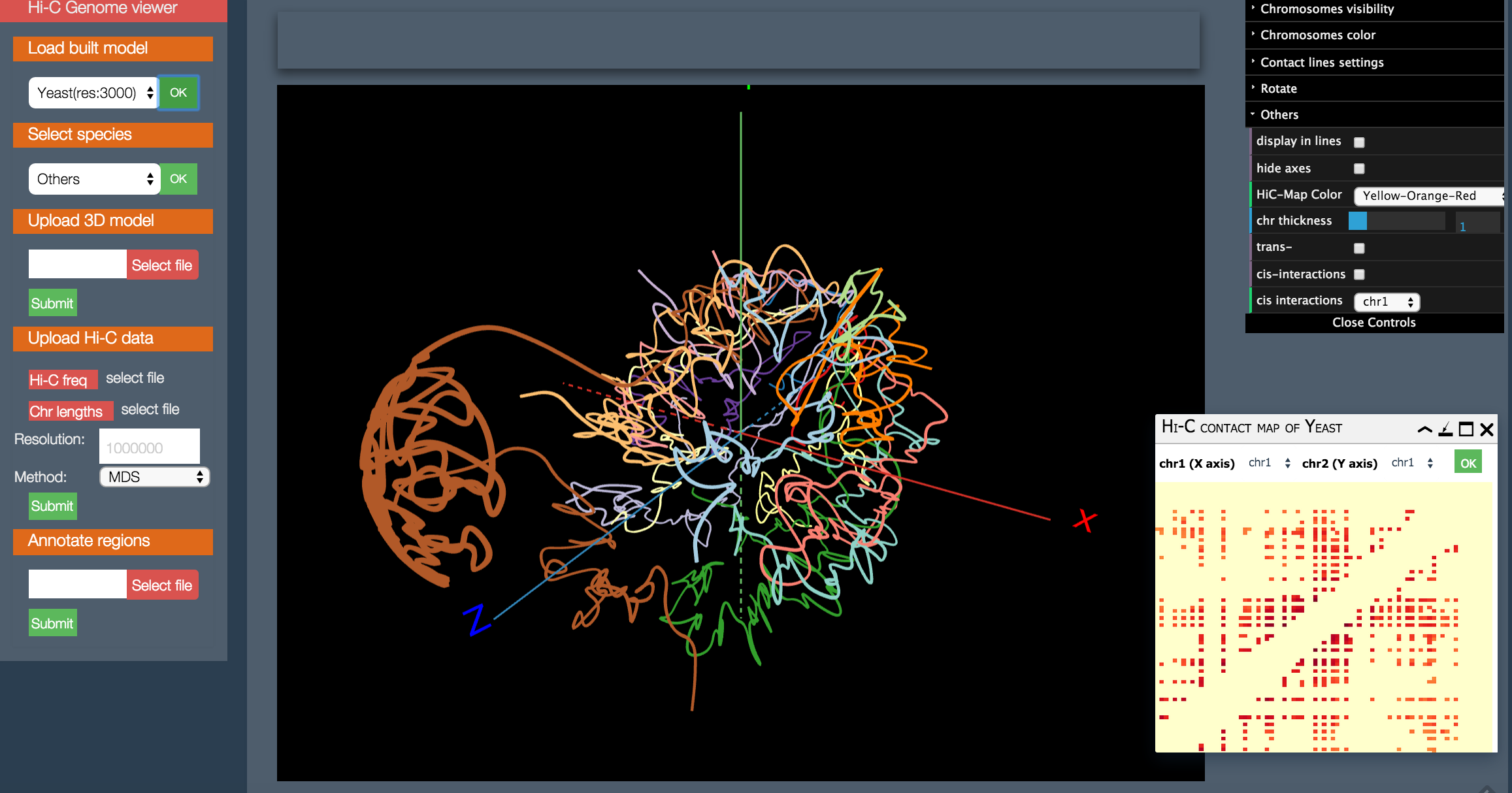 HiC-3DViewer is an interactive web-based tool designed to provide an intuitive environment for investigators to facilitate the 3D exploratory analysis of Hi-C data. It contains many useful visualization and annotation functionalities.