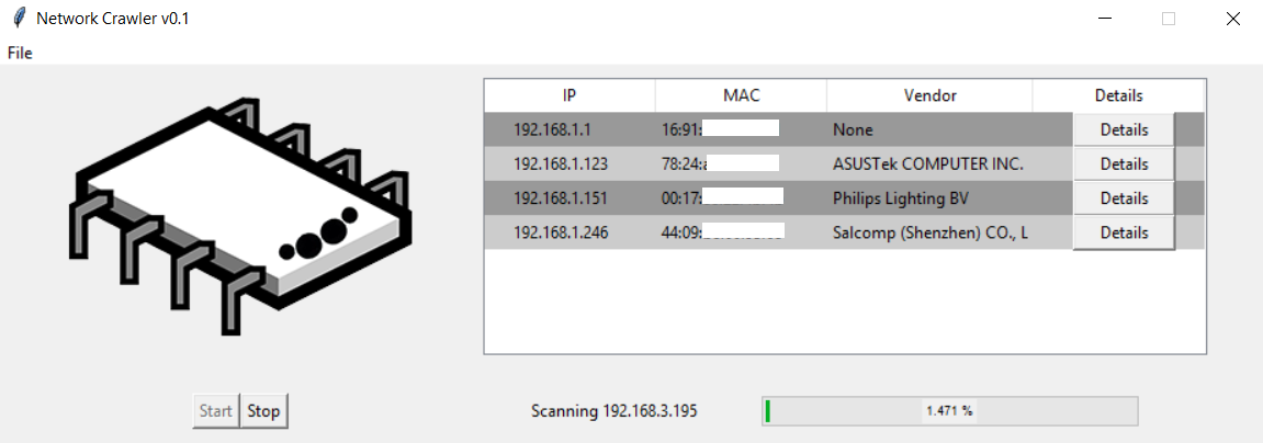 - Vendor identification via MAC address OUI lookup