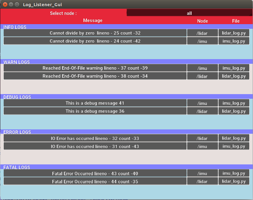This folder has a script log_listener.py, used to display Log messages generated by various ROS nodes.
