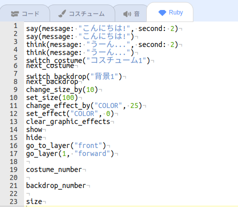 looksの命令ブロックをRubyに変換できるようにしました #57