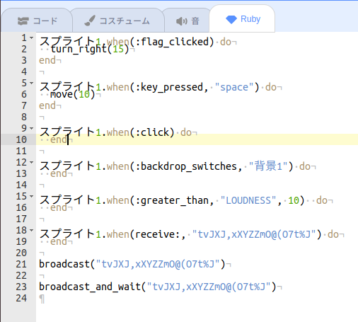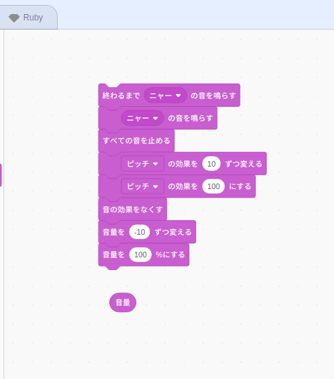 Sound、Event、Controlの命令ブロックをRubyに変換できるようにしました。 #58