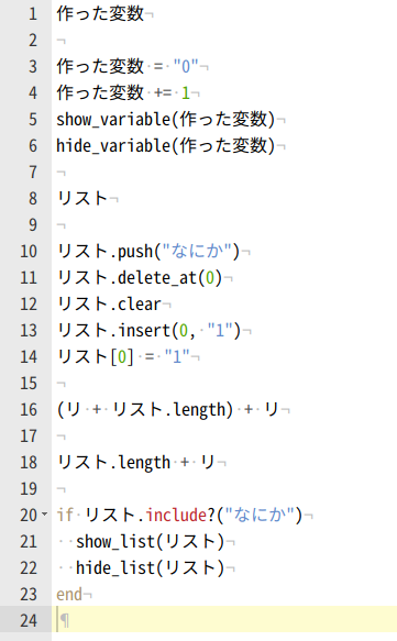 これはあまりにもトリッキーなので、 ということで、以下の Blockly.Ruby.variableName(name) を index.js に定義して、それを呼び出すことにしてもらってもいいでしょうか? Blockly.Ruby.variableName = function (name, type = '') {