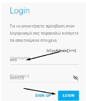 sysadmin = username admin