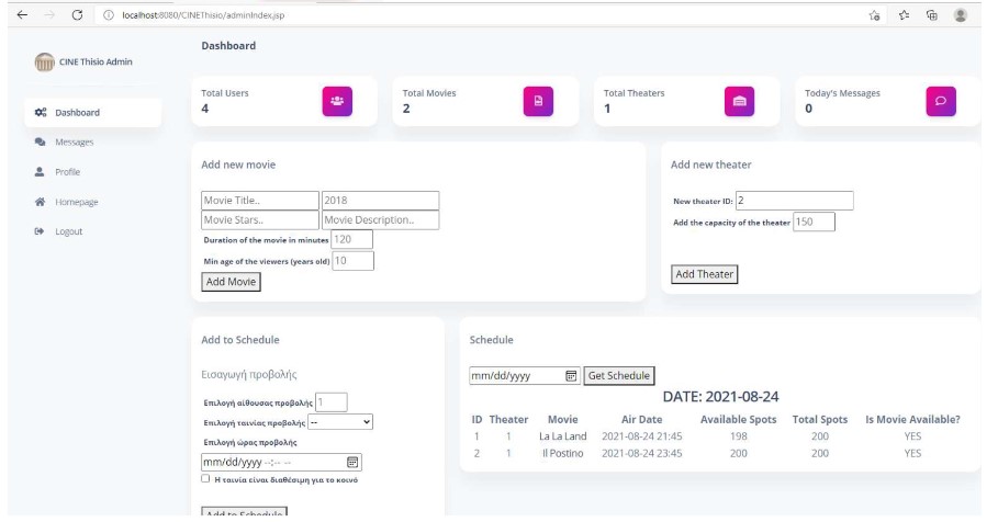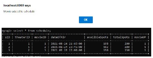 Working ticketing system with email receipt and admin dashboard to add or edit the theater schedule, movies and rooms