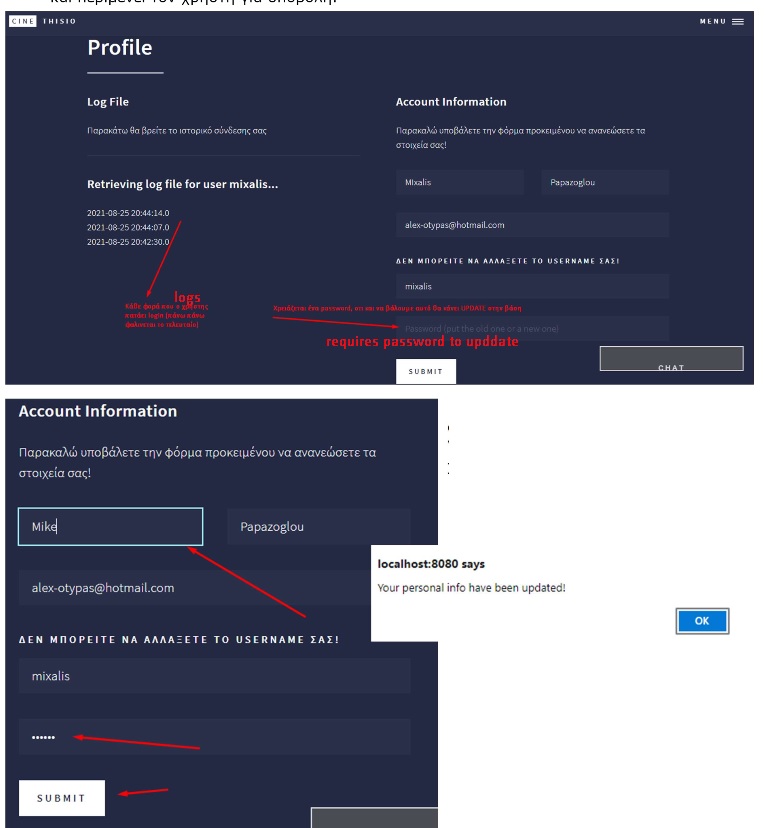 In MySQL has created database “cinethisio” which is the only one that interacts with it system. Subsequently a brief description will be printed for each table that have been created for the implementation of system endpoints.