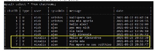 DESC chatrooms; This is where the asynchronous messages by user and administrator are stored.