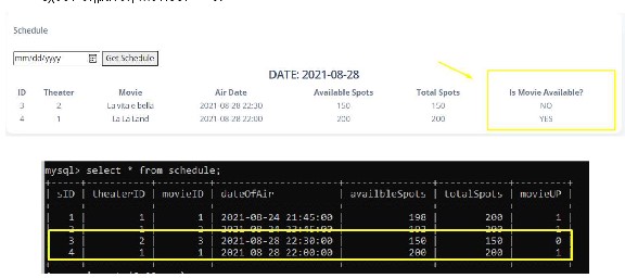 date = date msg sendDESC theater;This table represents the available rooms that the cinema has