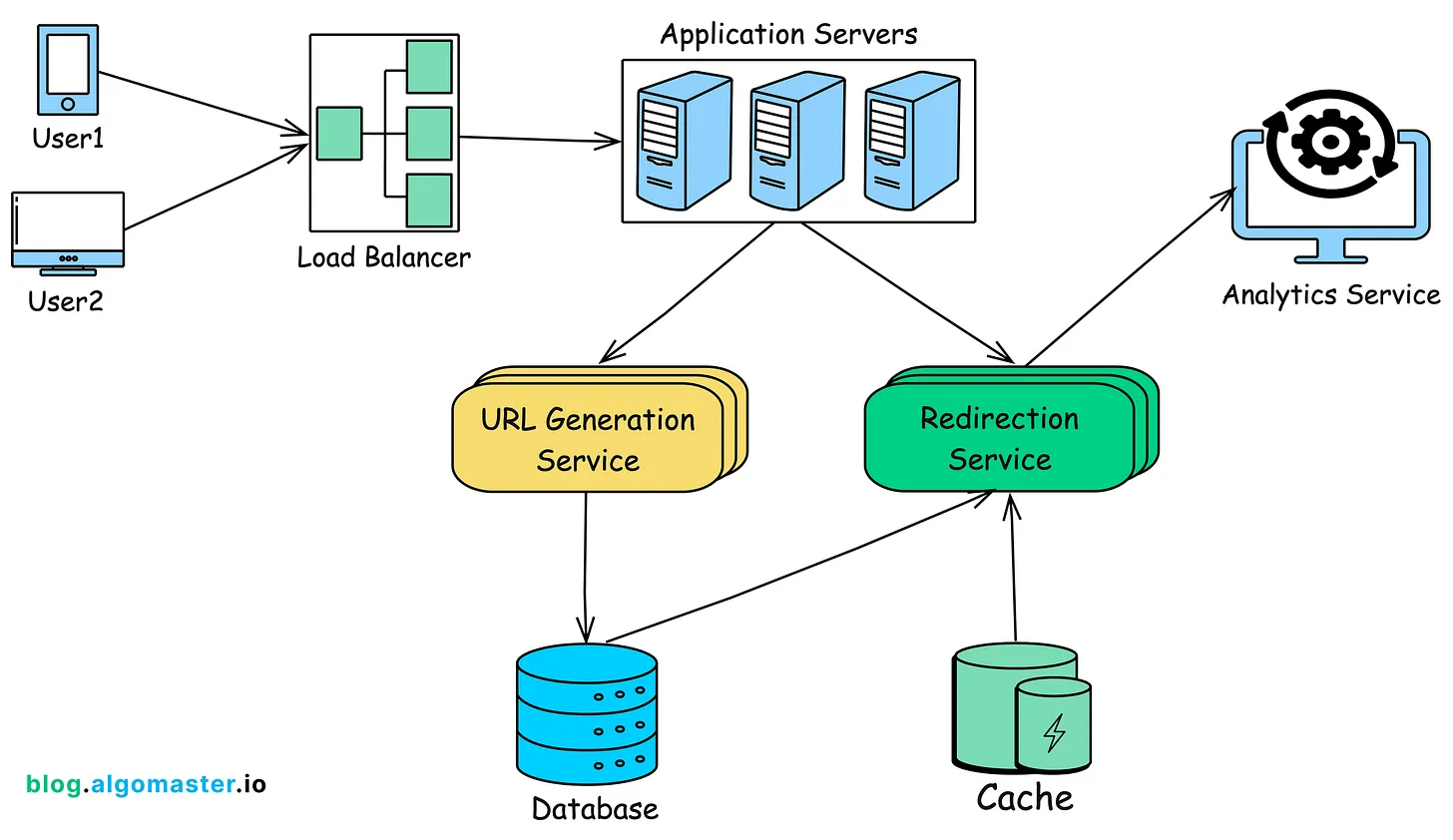Application Servers: Handles incoming requests for shortening URLs and redirecting users.