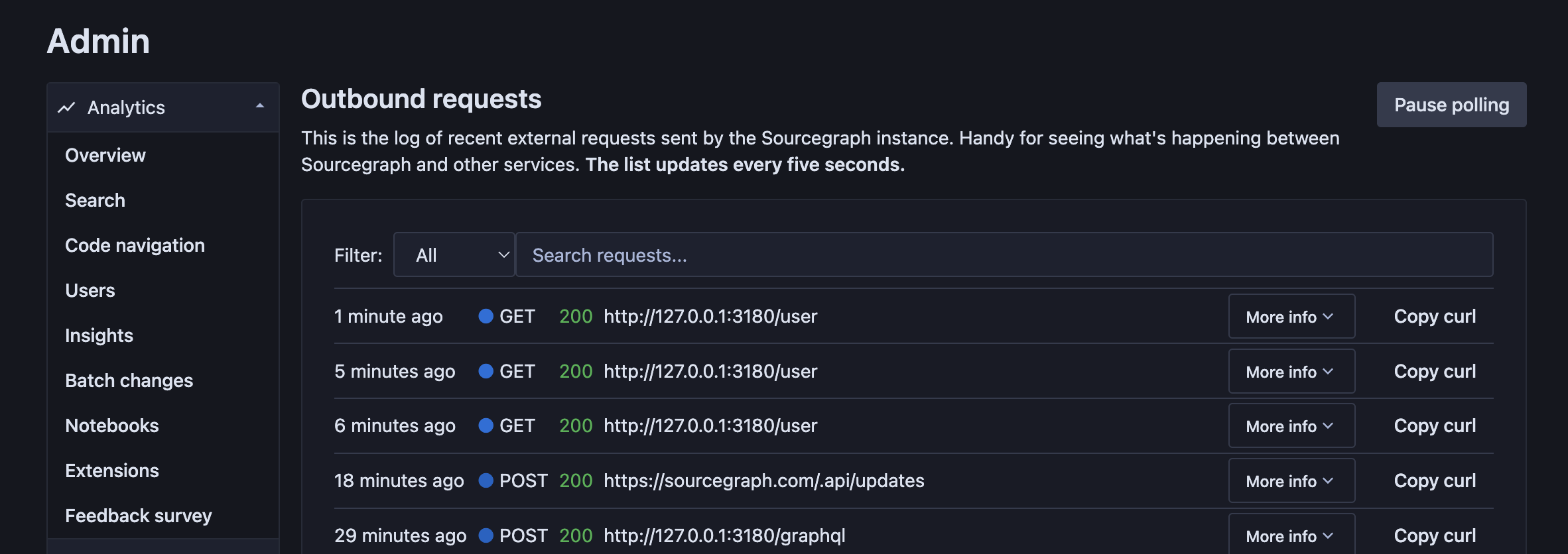 I've found that on dotcom, there are so many outbound requests per minute that it's practically impossible to investigate the requests because of the 5-sec polling. Annoying vid that demoes this in 25 seconds