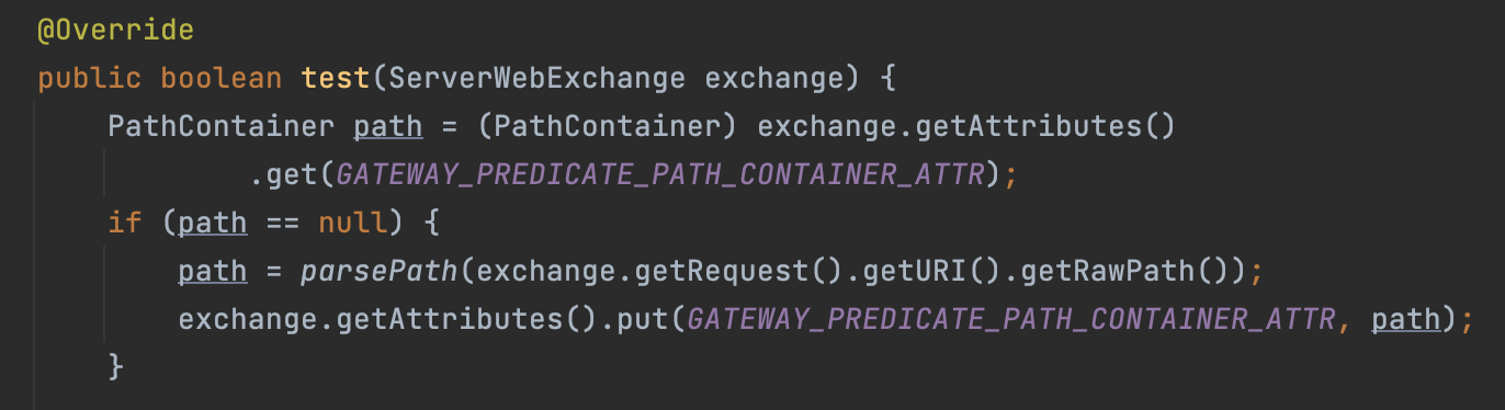 So in PathRoutePredicateFactory, I hope exchange add a new attribute as below, to store its pathContainer.