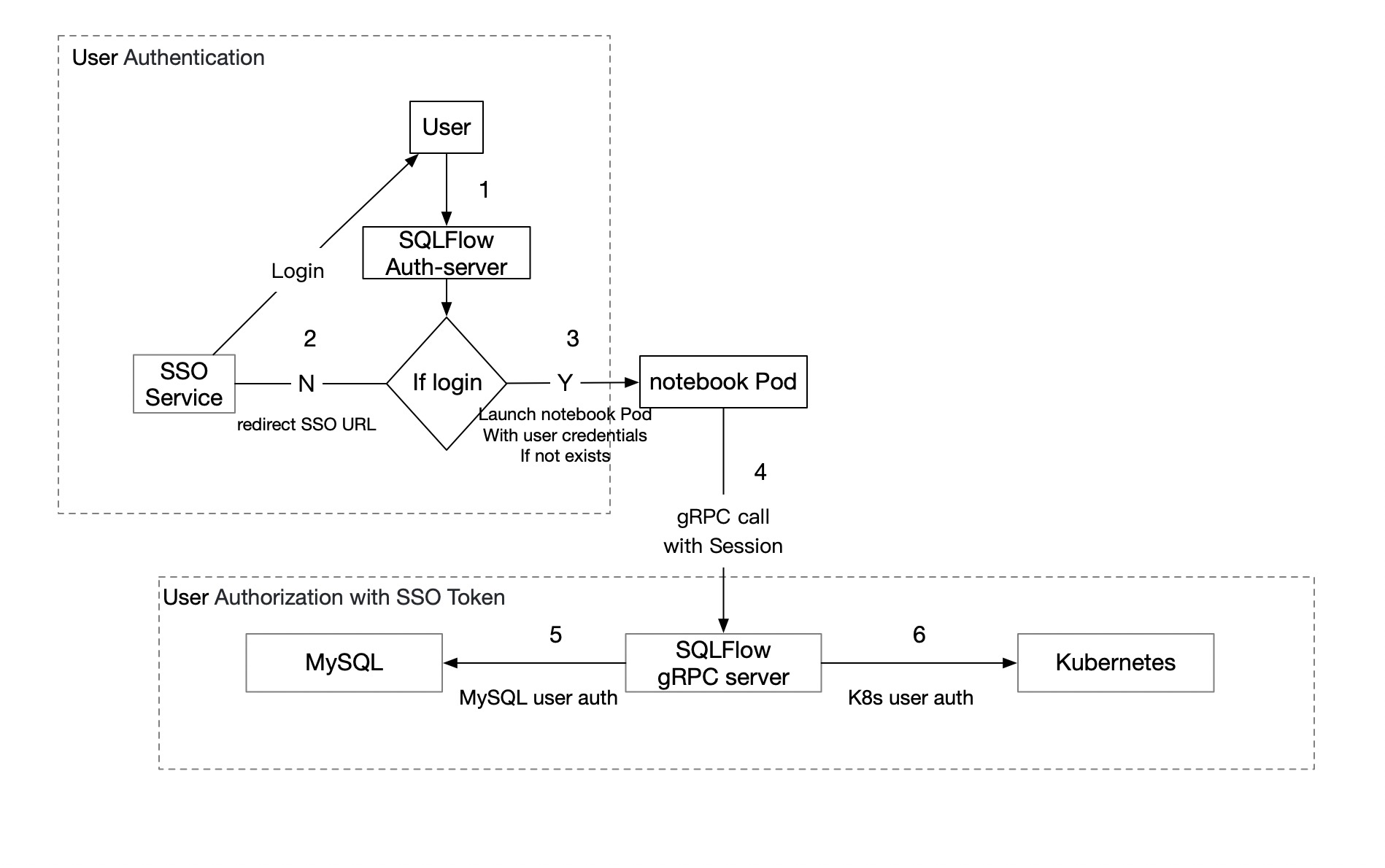| SQLFlow should depend on the [SSO](https://en.wikipedia.org/wiki/Single_sign-on) |
