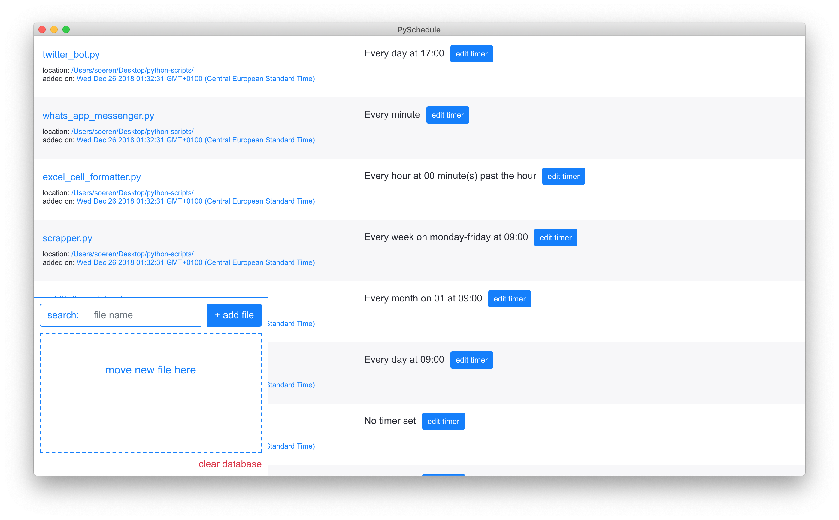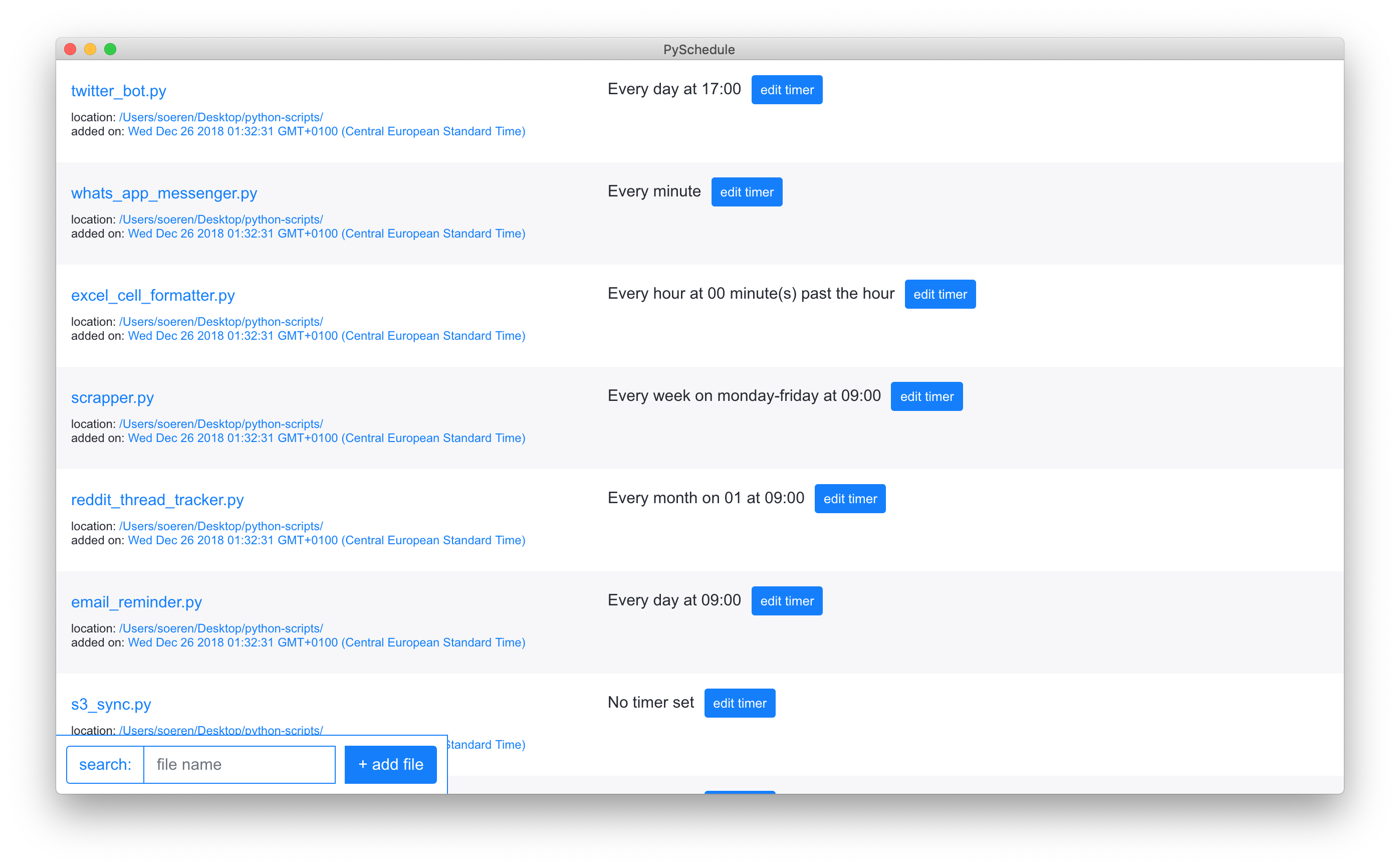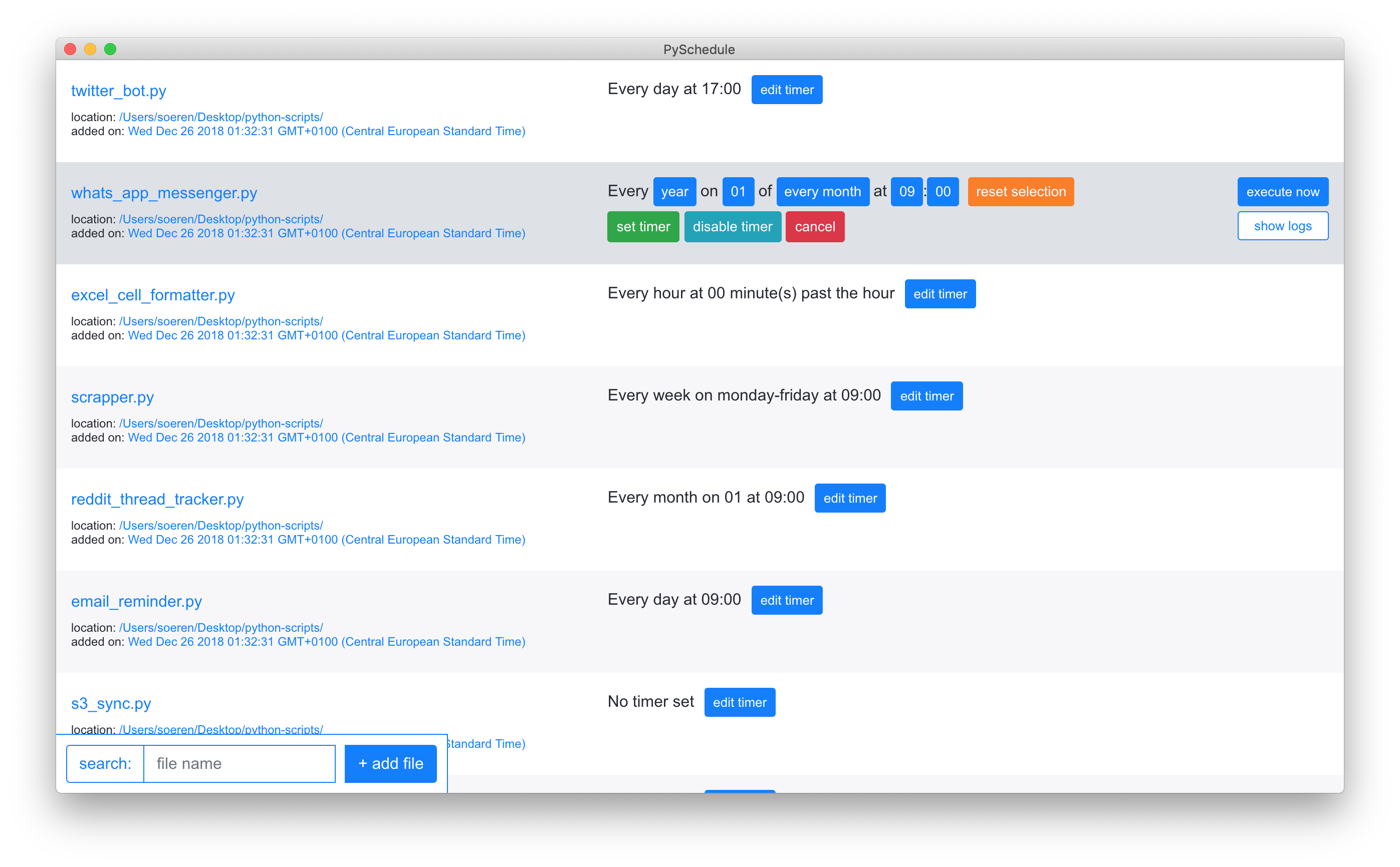An electron app with a nice and easy UI, with which one can schedule the execution of a python file.