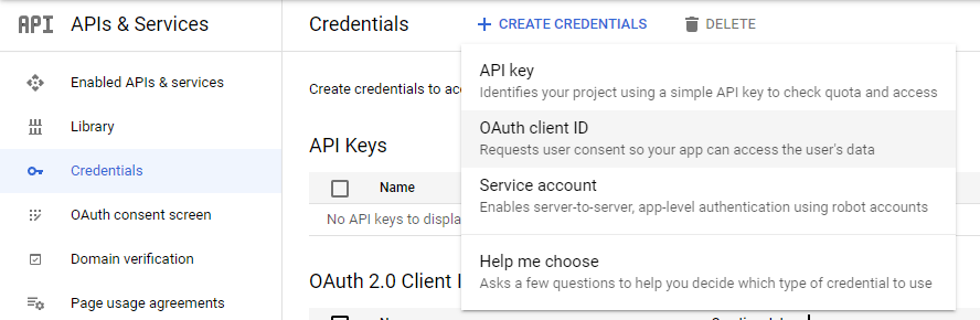 Navigation menu>APIs & Services>Credentials - Επιλέγουμε