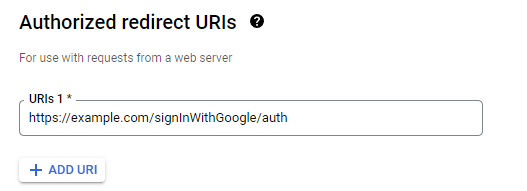 Authorized redirect URIsεισάγουμεhttps://example.com/signInWithGoogle/authήhttp://example.com/signInWithGoogle/authαν ή εφαρμογή είναι ακόμα σε testing mode
