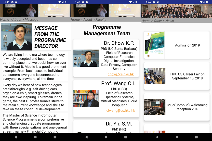 The Mobile MSc (CS) is an Android-based application for phones, which contains information about MSc (CS) programme. It was developed using Android Studio with a minimum API 24 and tested on the “Pixel 2 XL API 28” Android Virtual Device, also the Android phone ”XIAOMI MIX2”.